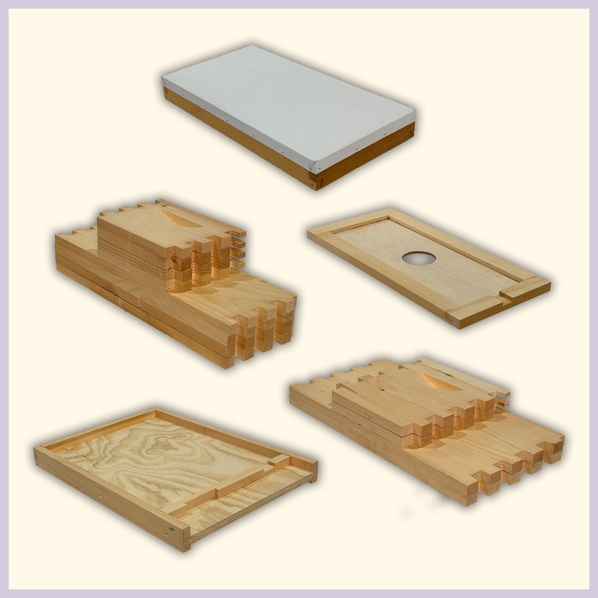 - A Components Kit with supers, bottom board, inner cover and outer cover