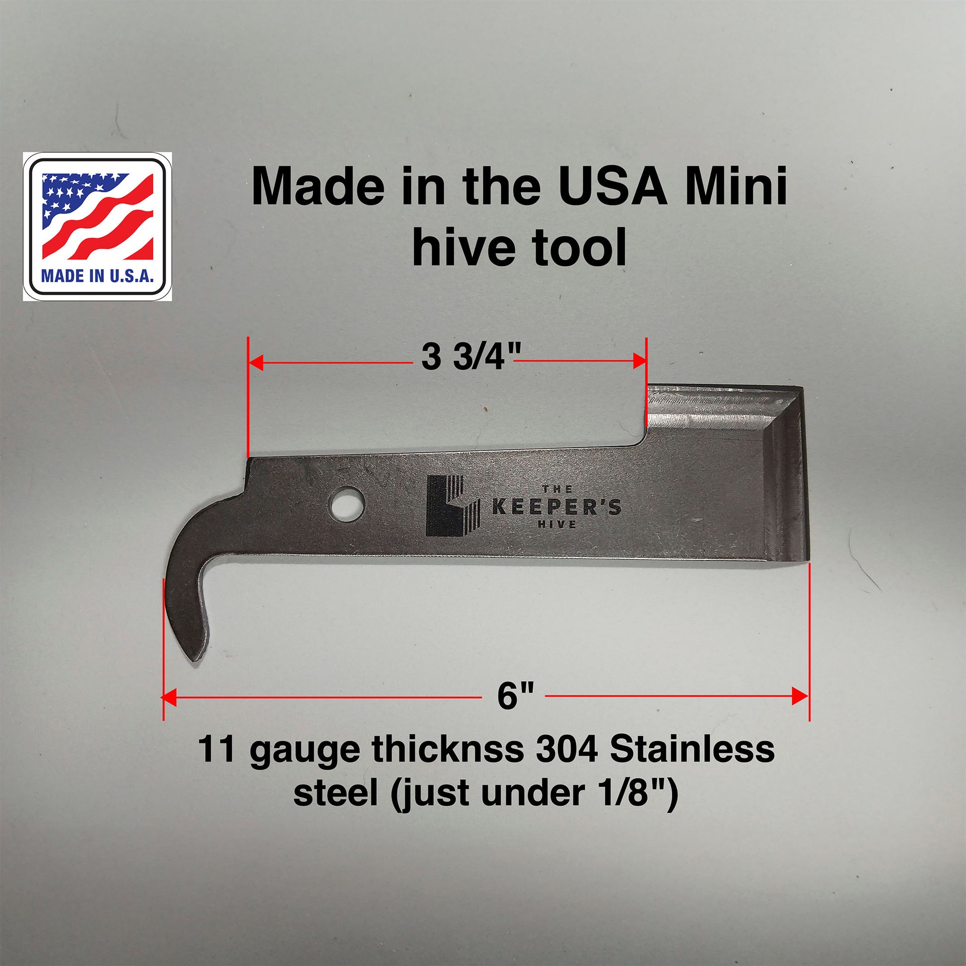 The perfect hive tool for The Keeper's Hive, or any hive. Made in Pennsylvania using US stainless steel, this hand-sized tool gets the job done without being too bulky. Store it in your jacket pocket without worrying that it may fall out, or attach it to a lanyard to keep it easily within reach. We've been using these hive tools for years, and all our other hive tools have stayed put on the shelf...